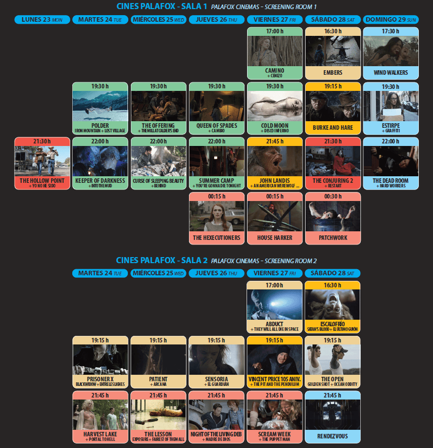 Ya podéis echarle un vistazo a los horarios oficiales de Nocturna Festival que se han publicado en su página web oficial: http://www.nocturnafilmfestival.com/images/descargas/NOCTURNA2016_programa.pdf